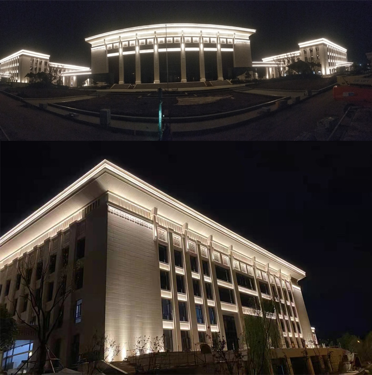 湖北監察委員會辦公樓亮化工程是我公司2021年承接的亮化項目,整體效果設計色調采用暖白光為主,整體勾勒和打亮,端莊大氣。