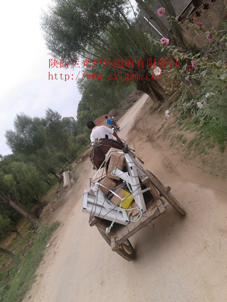 陜西榆林是佳縣太陽能路燈照明項目,佳縣在榆林地區(qū)相對其他縣區(qū)比較落后,在廣大的農(nóng)村地區(qū)根是,基本的村莊道路設施都沒有完善,國家近年來的對廣大農(nóng)村扶貧支持力度加大,為農(nóng)村地區(qū)修筑水泥硬化道路,安裝太陽能路燈,我們蘭光照明在佳縣村長上安裝,首次用牛車來拉燈桿,安裝條件比價艱苦,但是我們的指導安裝人員還是克服了種種困難,使得真?zhèn)€村莊的燈亮了起來,改變了夜間走夜路的歷史。