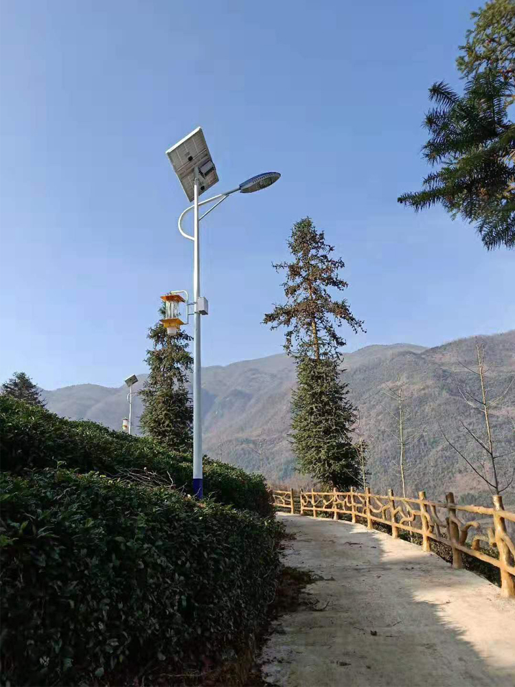 2020年公司生產的照明及殺蟲倆用的路燈產品,項目安裝與陜西西安周至,該燈具采用了倆套供電系統,一套是太陽能路燈系統,一套是太陽能殺蟲燈系統。各自獨立的系統使用更加的穩定。