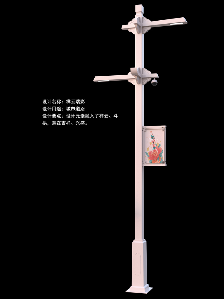 設(shè)計要點:此燈具借鑒古建筑馬頭墻的造型,頭部采用經(jīng)典曲線,中部采用祥云圖案裝飾,下部采用精致曲度造型,整體優(yōu)美流暢,簡而…